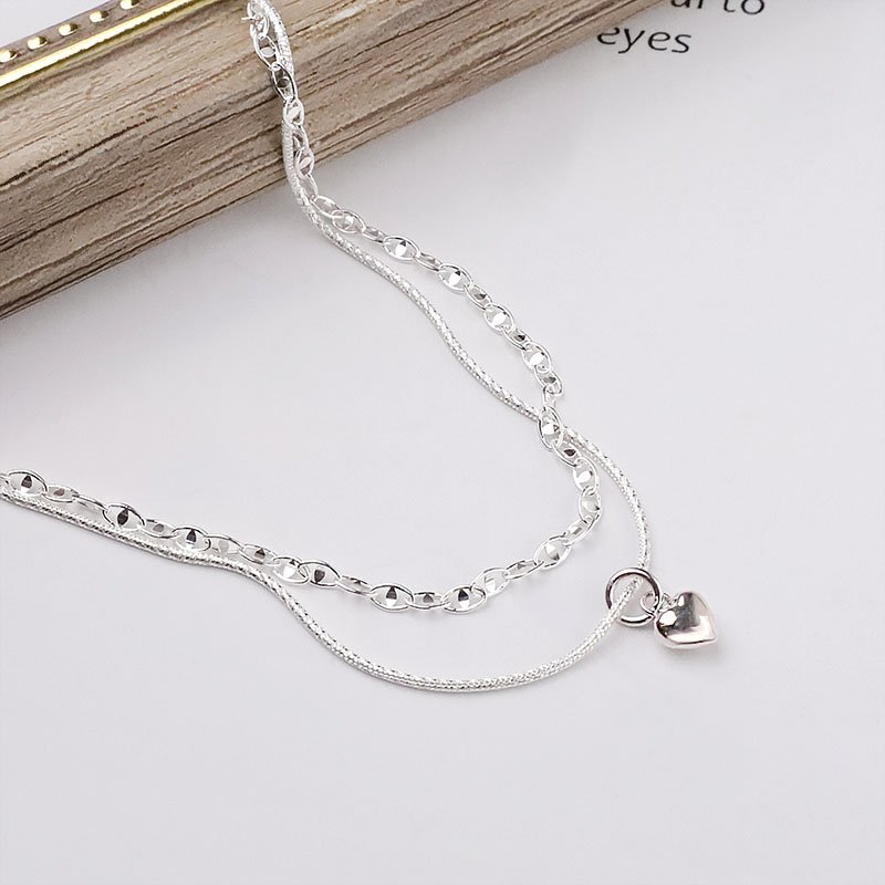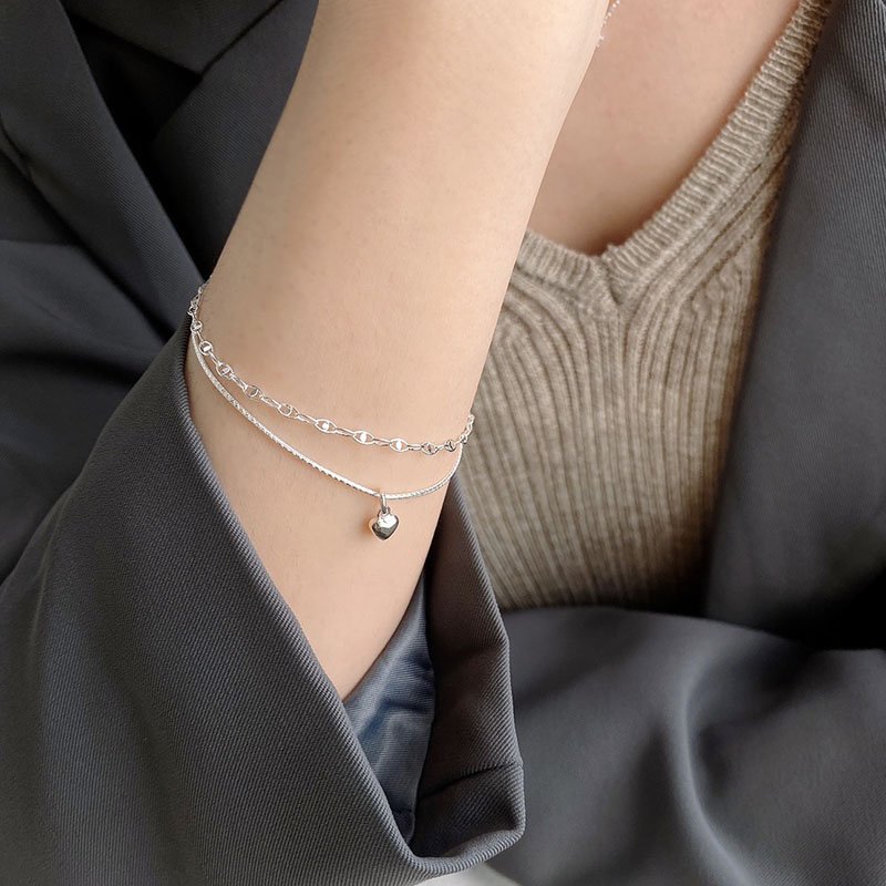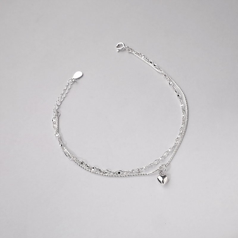HB-340-C 雙鍊日字批花垂吊愛心手鍊