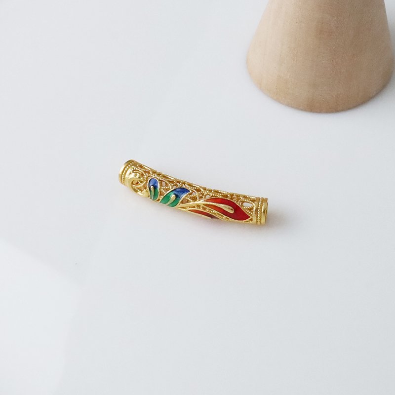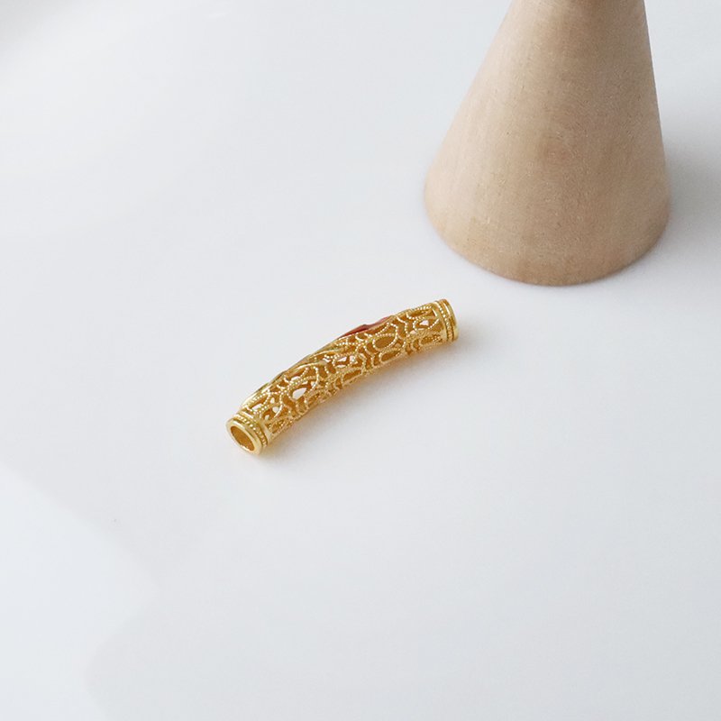T28-26-C 彩繪鏤空銀管(黃K金)(1入)
