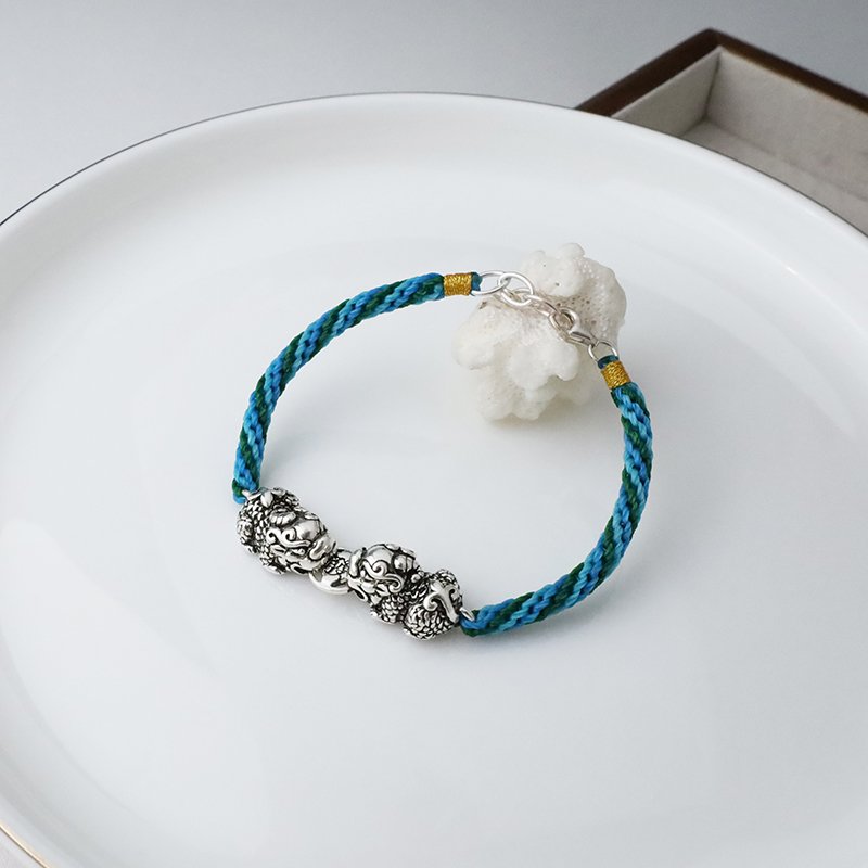 HBT-083 一路發咬錢豼貅編織手繩(藍綠/紅金粉/紫橘綠)(手工製作約3-5天‧可預訂長度)
