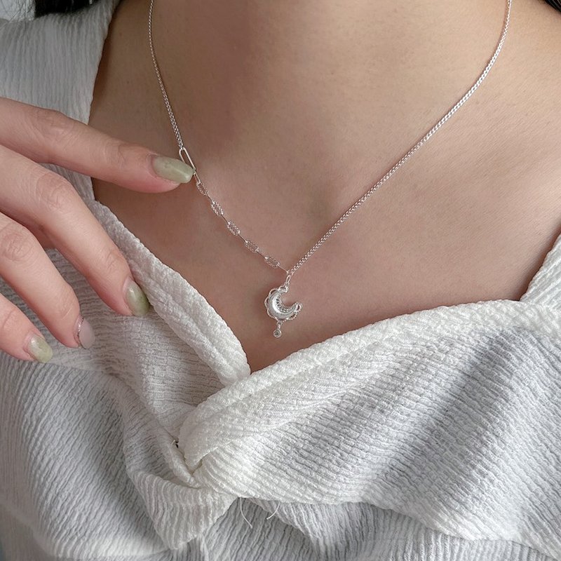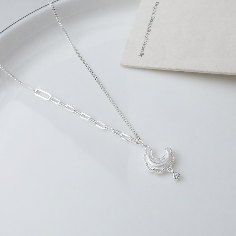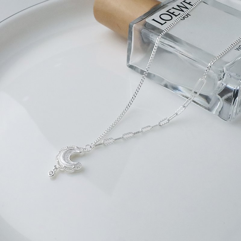 N23-F 滾邊霧銀月亮垂吊小鑽造型套鍊