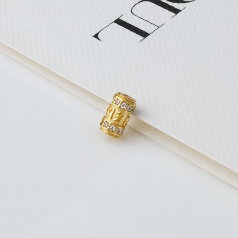 T65-11-B 金色鑲鑽六字真言滾桶珠(配件)(黃K金)