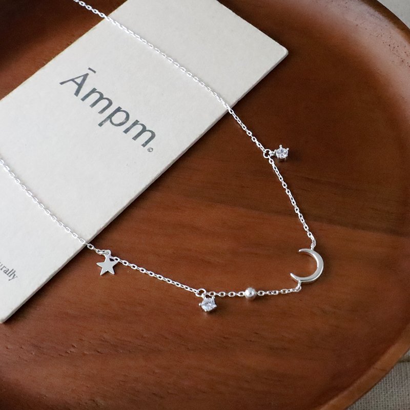 N79-E 星月圓珠垂吊小鑽造型套鍊