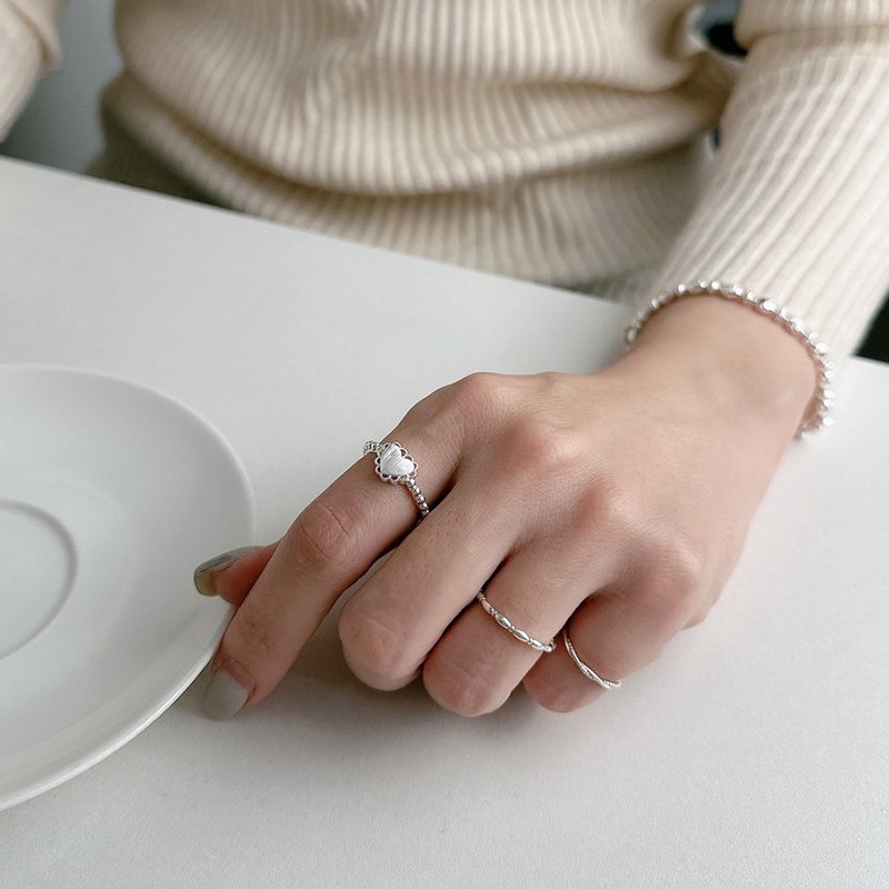 R99-D 花邊拉絲愛心珠珠活圍戒