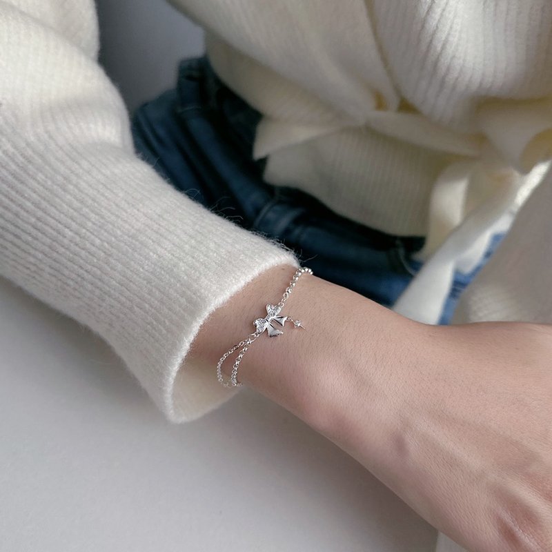 HB-93-F 愛心蝴蝶結垂吊閃爍鑲鑽手鍊