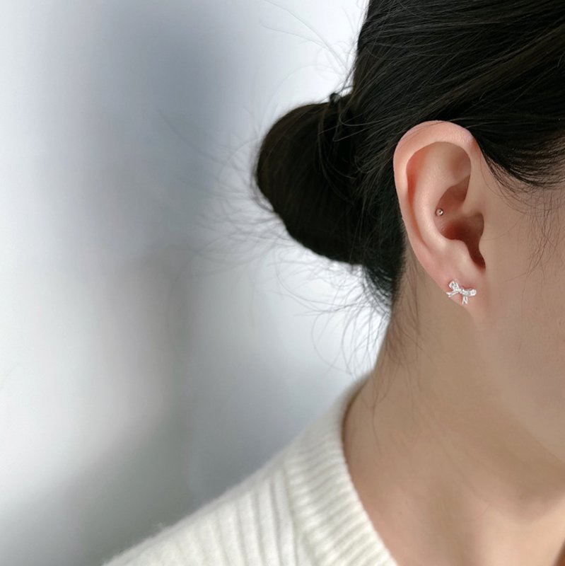 ES561-D 蝴蝶結鑲鑽鎖針耳貼