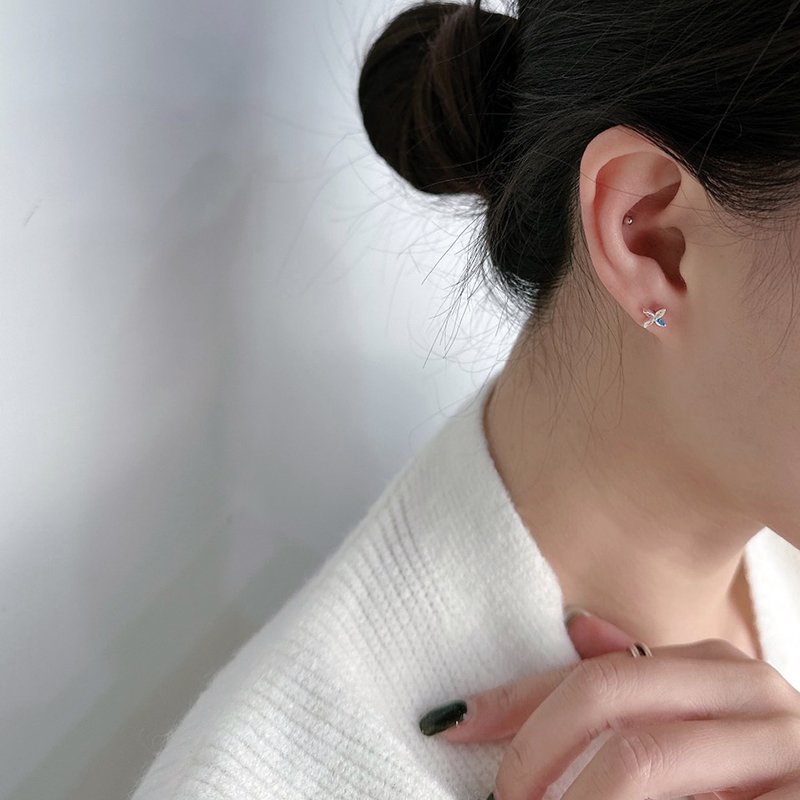 ES352-D 彩鑽風車小花造型鎖針耳貼