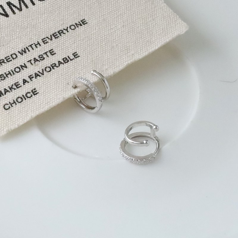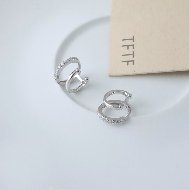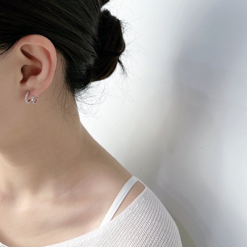 EB-57-G 銀白K拼接鑲鑽雙環易扣