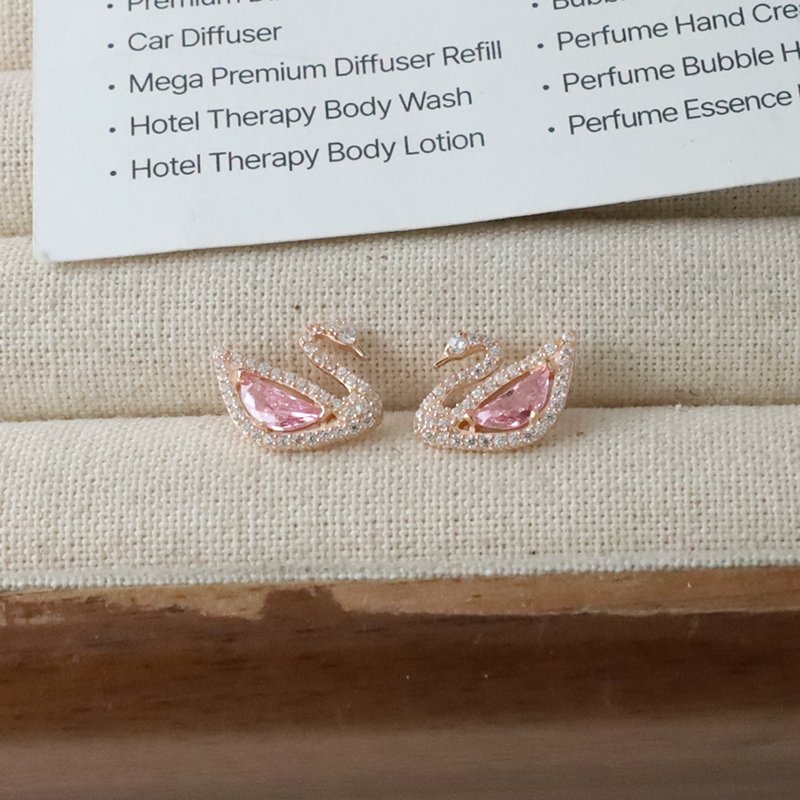 ES81-C 鑲鑽天鵝造型耳貼(白銀/玫金)
