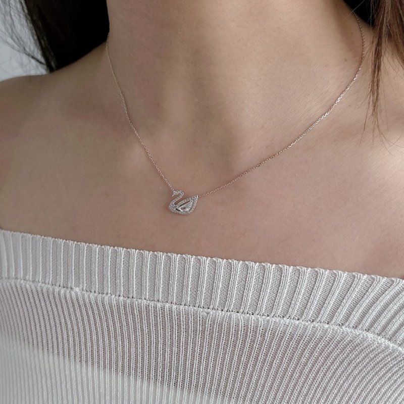 N236-E 鑲鑽天鵝造型銀套鍊(白銀/玫金)