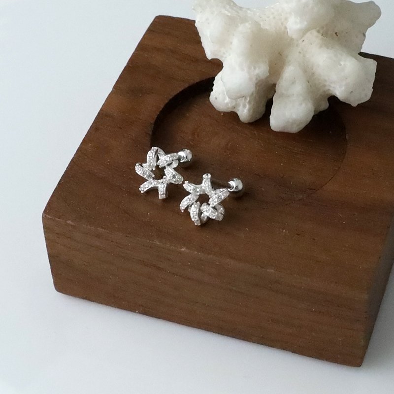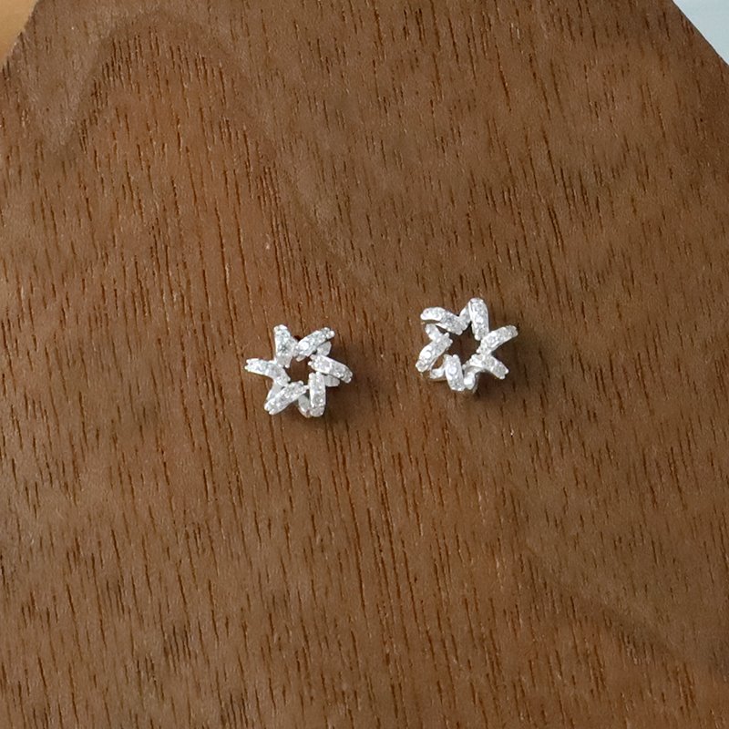 ES124-E 鑲鑽螺旋小花鎖針耳貼