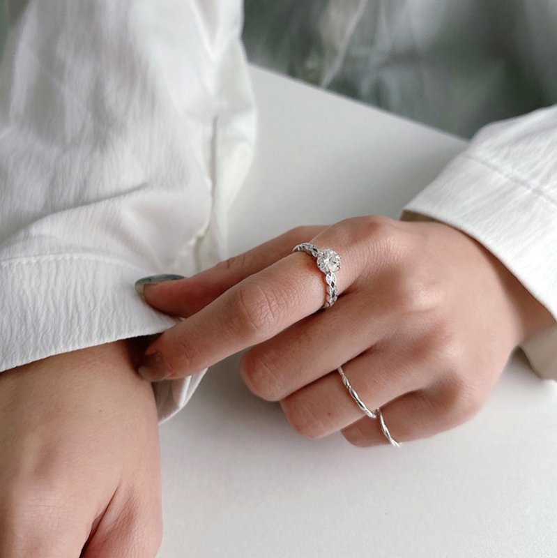 R586 雙排鑲鑽葉片莫桑石活圍戒