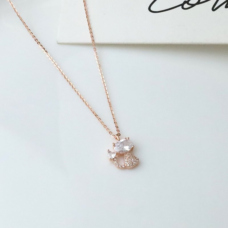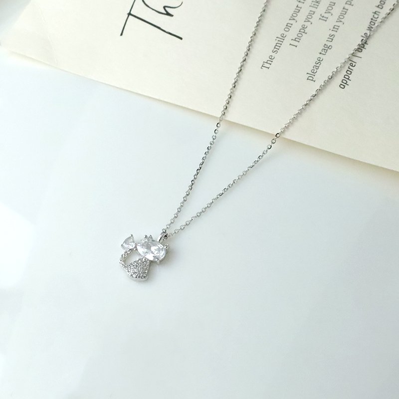N144-D 鑲鑽愛心小貓造型套鍊(銀白K/玫金)