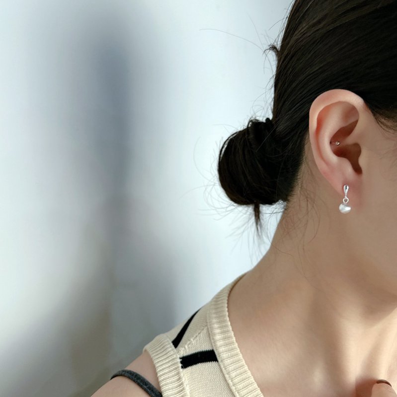 ES543-C 水滴垂吊拉絲圓珠耳環