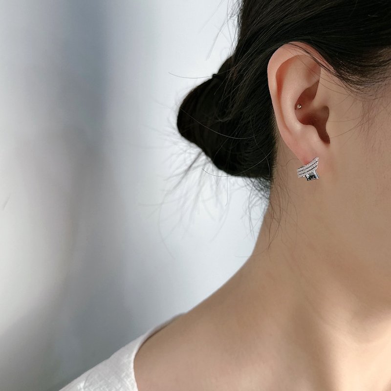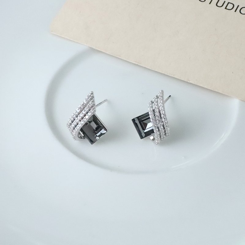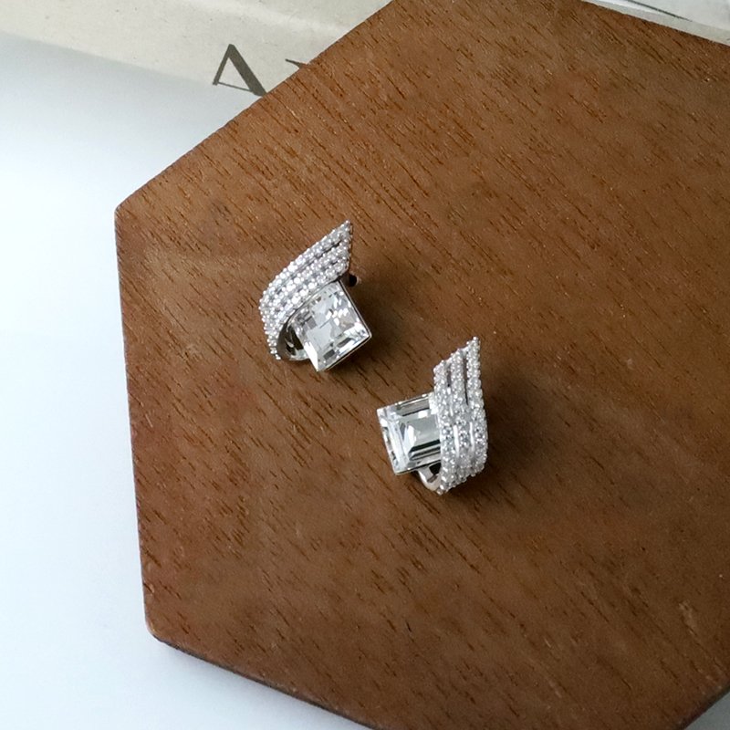 ES163-D 波浪排鑽菱形水鑽耳貼(銀白K)(黑/白)