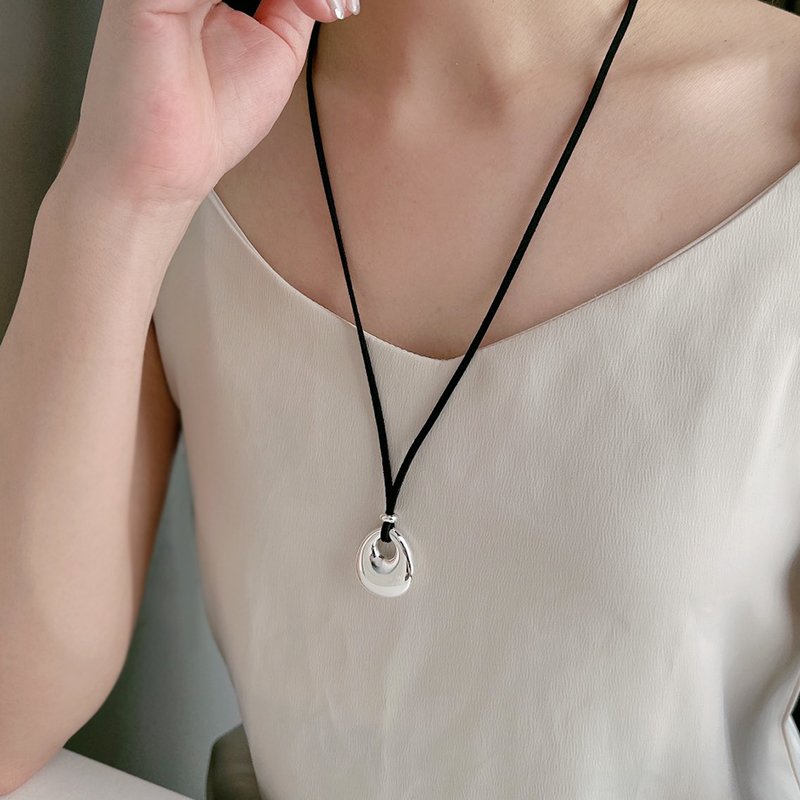 N508 圓包造型麂皮皮繩伸縮長鏈