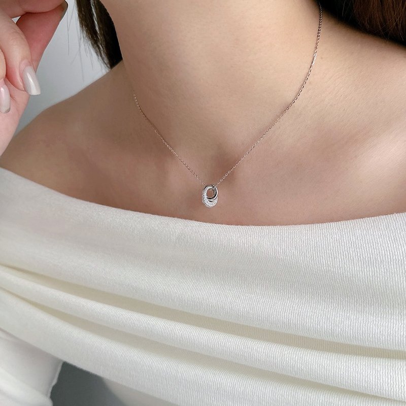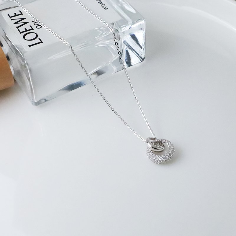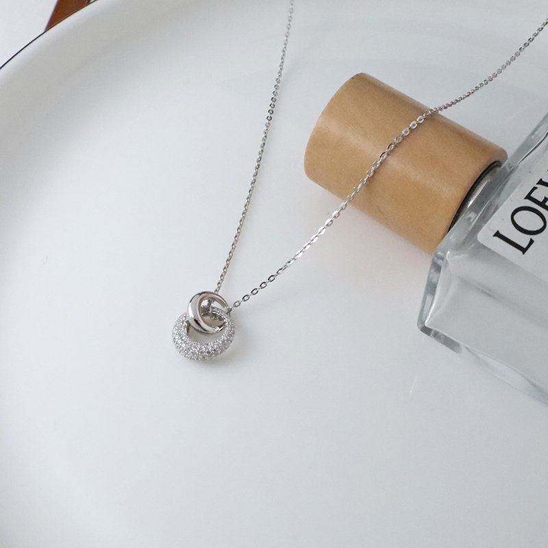 N24-F 雙圈鑲鑽造型套鍊(銀白K)