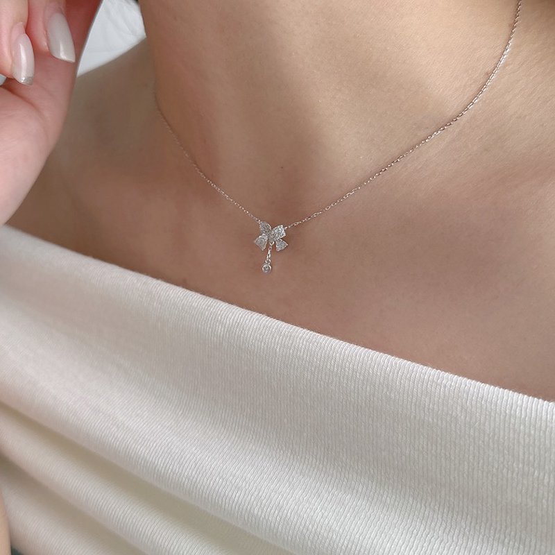 N509 鑲鑽綁結垂吊小鑽套鍊(銀白K)