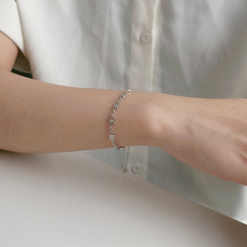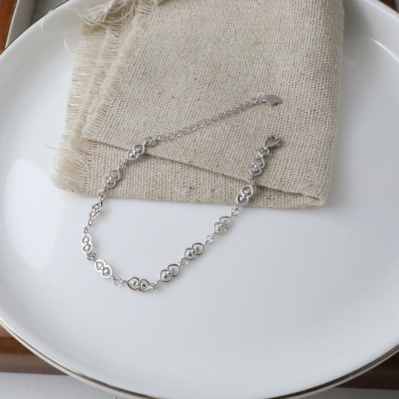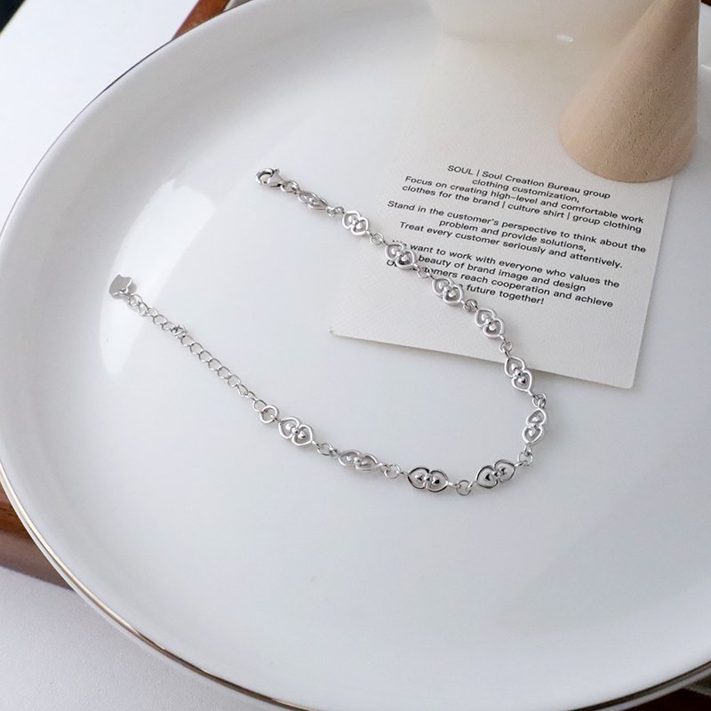 HB-140-B 銀白K鏤空翻轉愛心銀手鍊