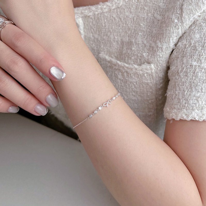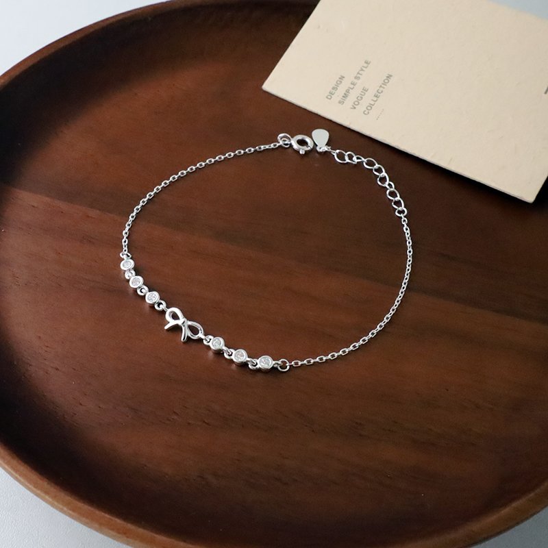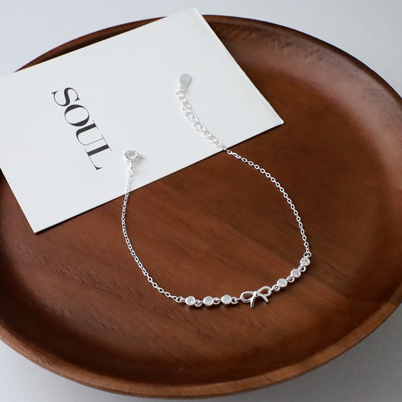 HB-113-F 連續小圓鑽拼接蝴蝶結銀手鍊