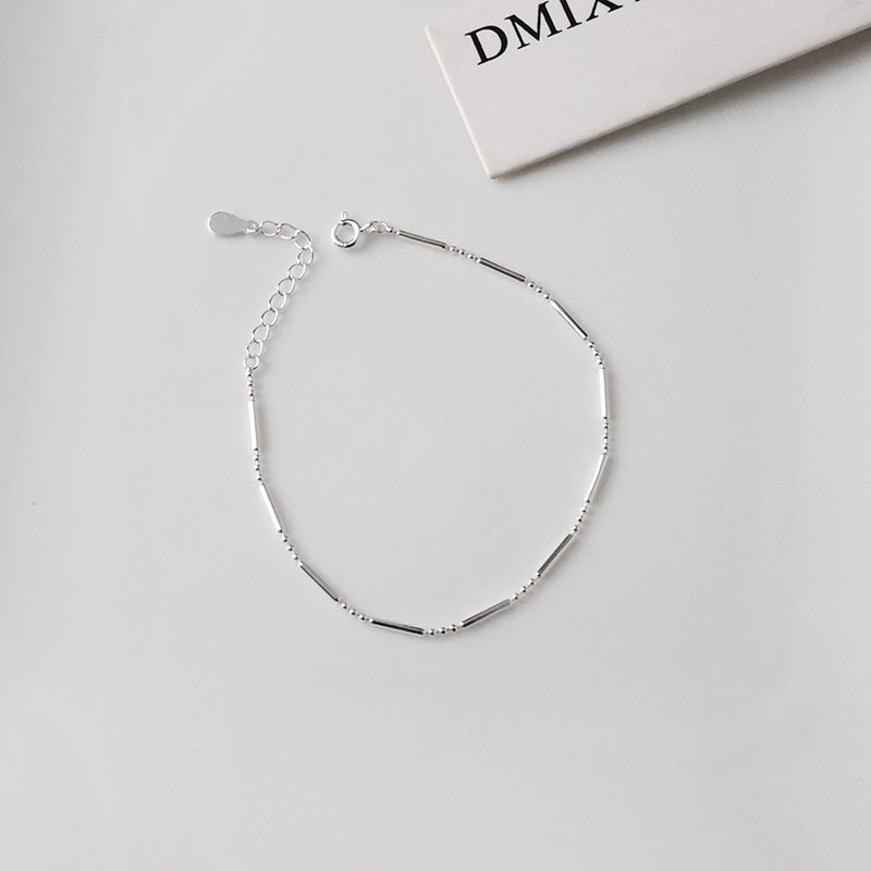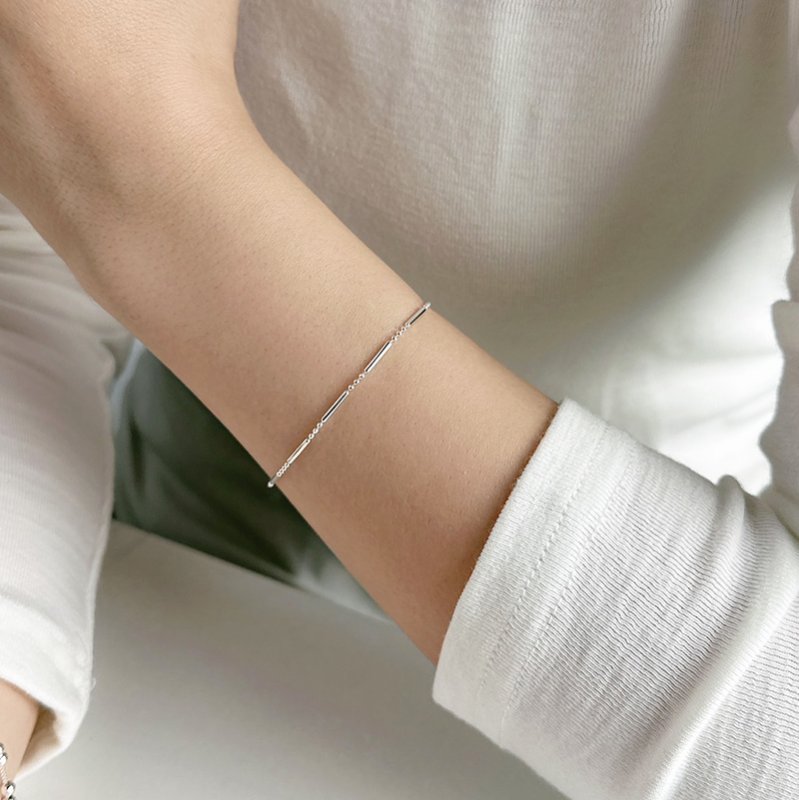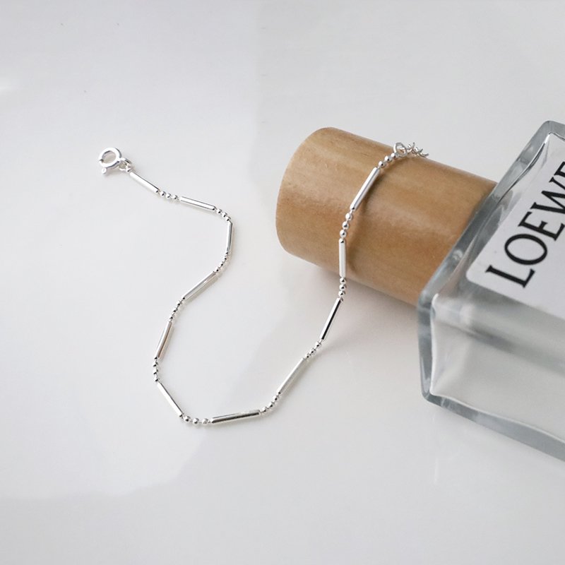 HB-389-D 銀管拼接圓珠細銀手鍊