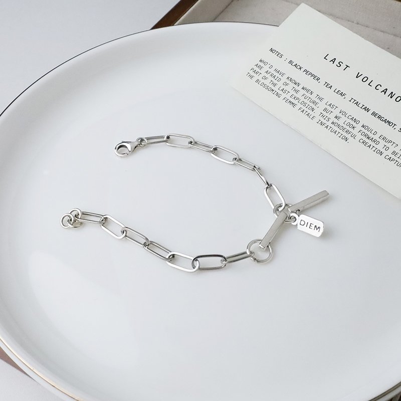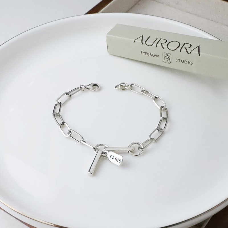 HB-319-B 硫化編織造型長方墜飾字母手鍊