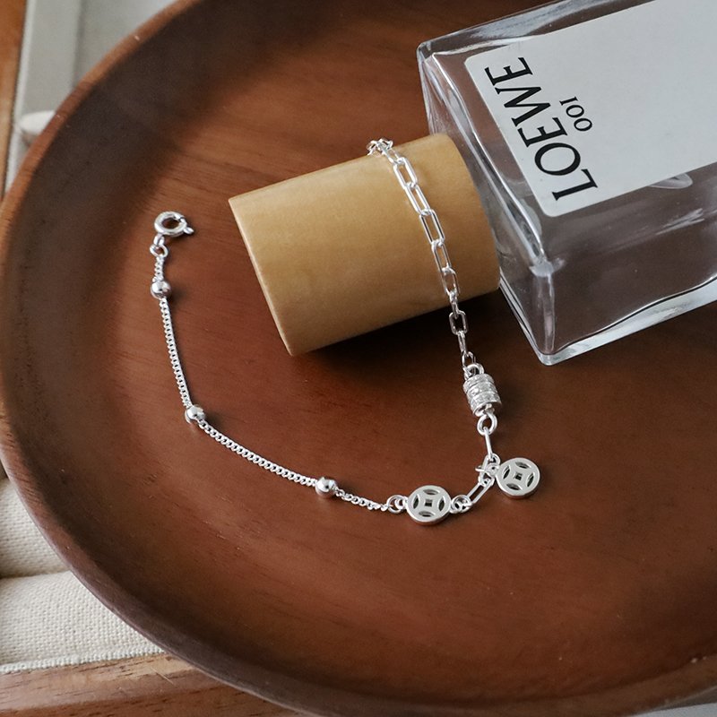 HB-298-F 圓筒錢幣橢圓拼接間隔珠手鍊