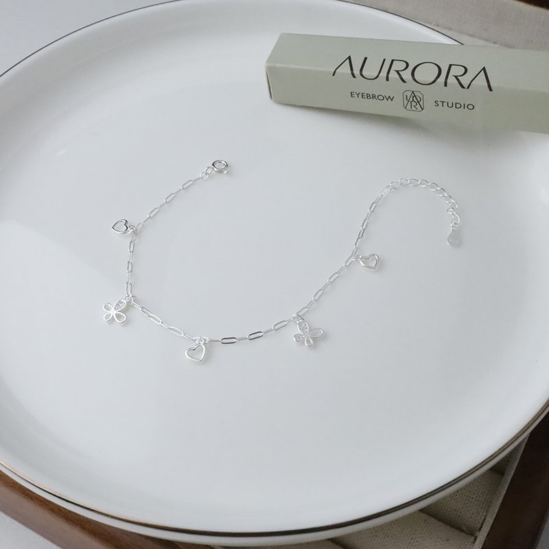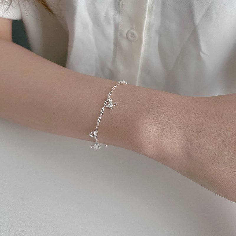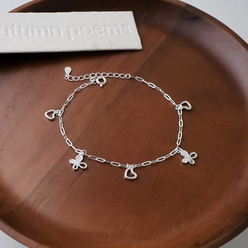 HB-265-D 垂吊愛心鑲鑽蝴蝶銀手鍊