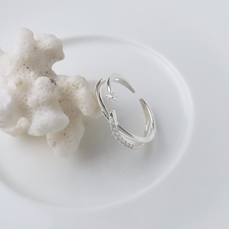 R218-F 兩線交錯鑲鑽活圍銀戒