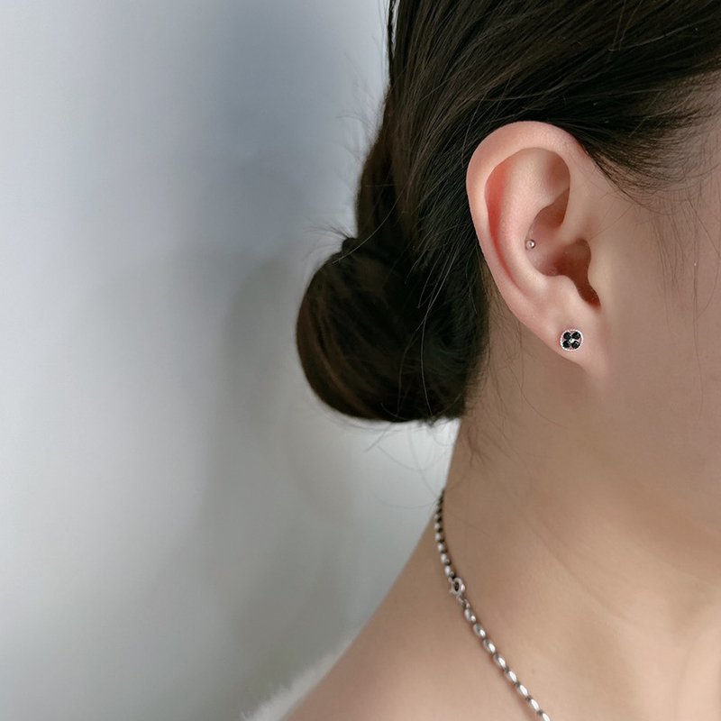 ES439-F 滾邊圓框四瓣鋯石小花鎖針耳貼