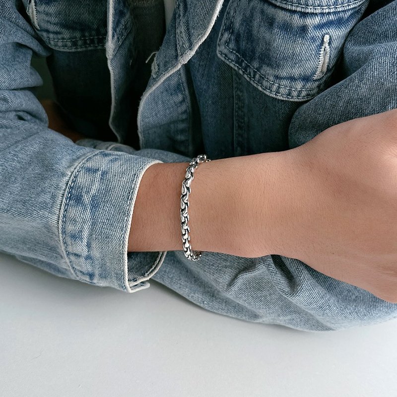HB-150 硫化水滴交錯造型銀手鍊(17-20CM)