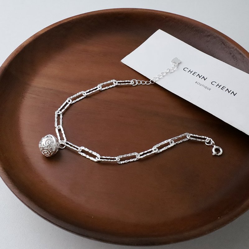 HB-419-B 鏤空雕花圓球橢圓壓紋手鍊