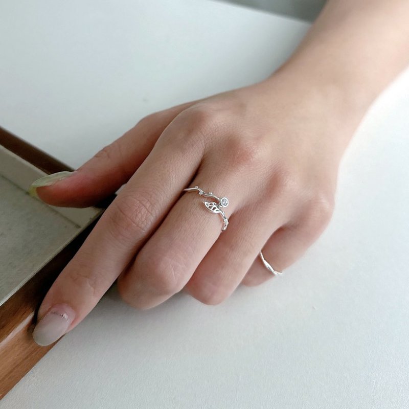 R107-D 鑲鑽藤蔓葉片活圍戒