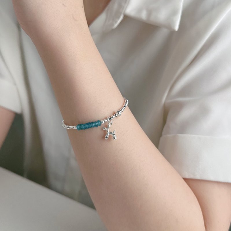HB-447-C 彩色石珠珠垂吊貴賓犬銀手鍊