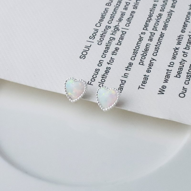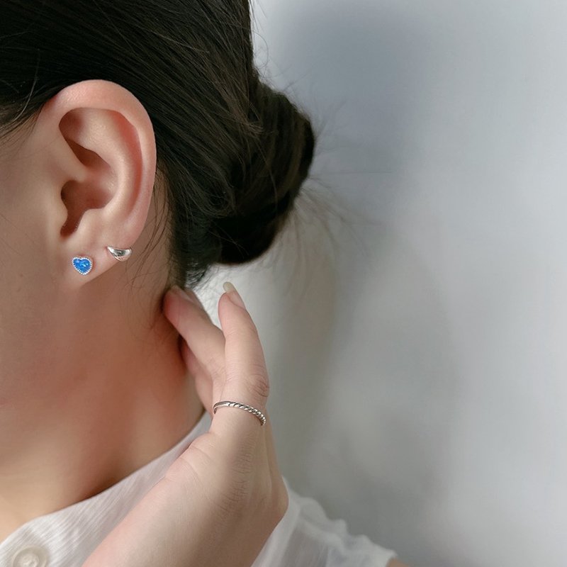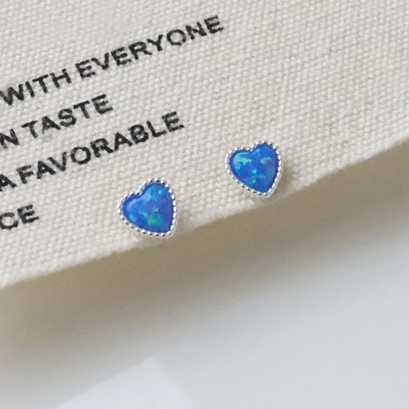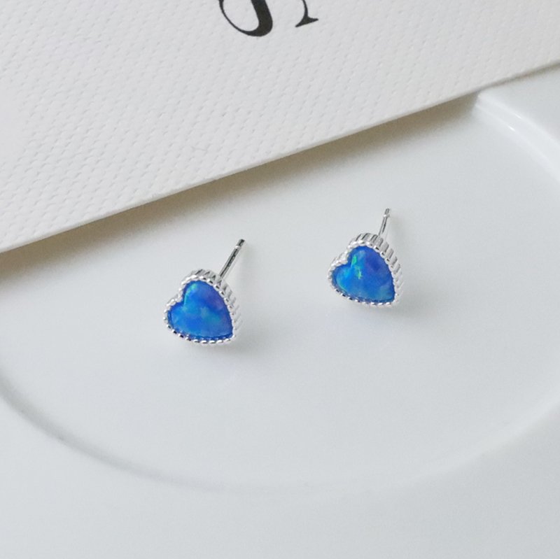 ES555-C 滾邊愛心歐泊石造型耳貼(藍/白)
