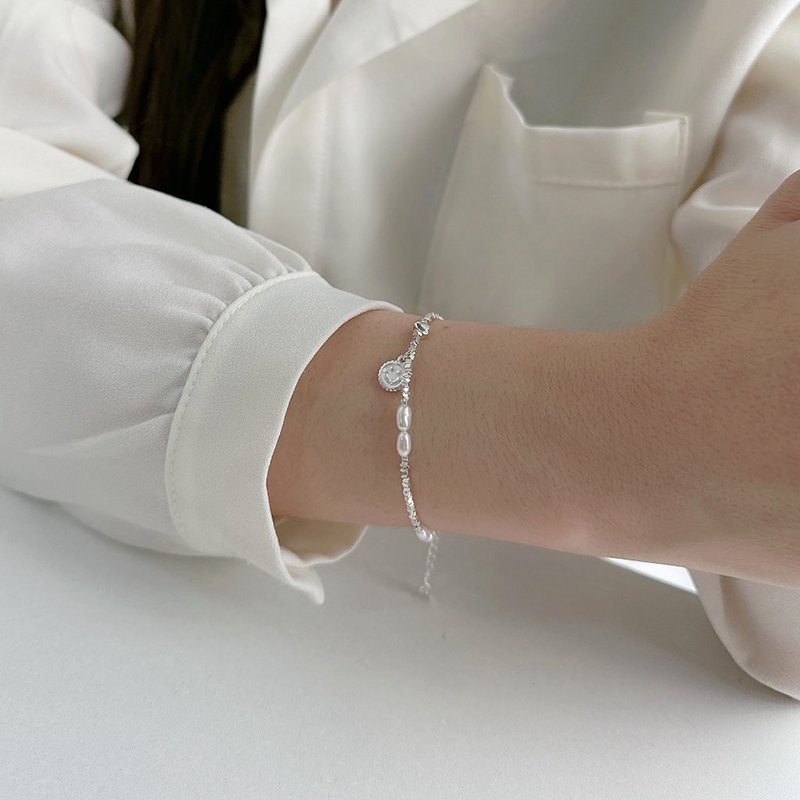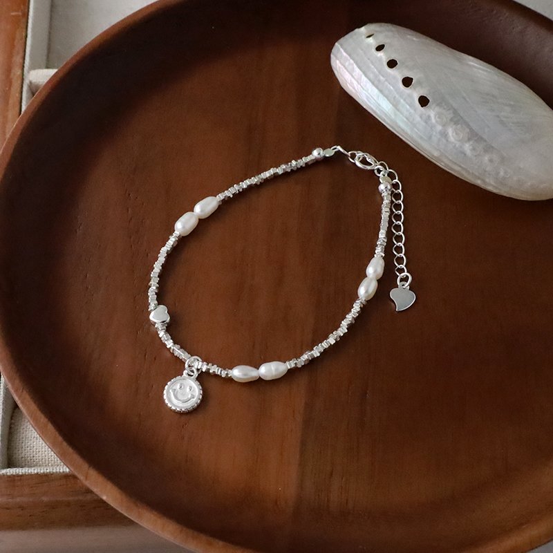 HB-352-D 米粒珍珠愛心垂吊笑臉造型手鍊