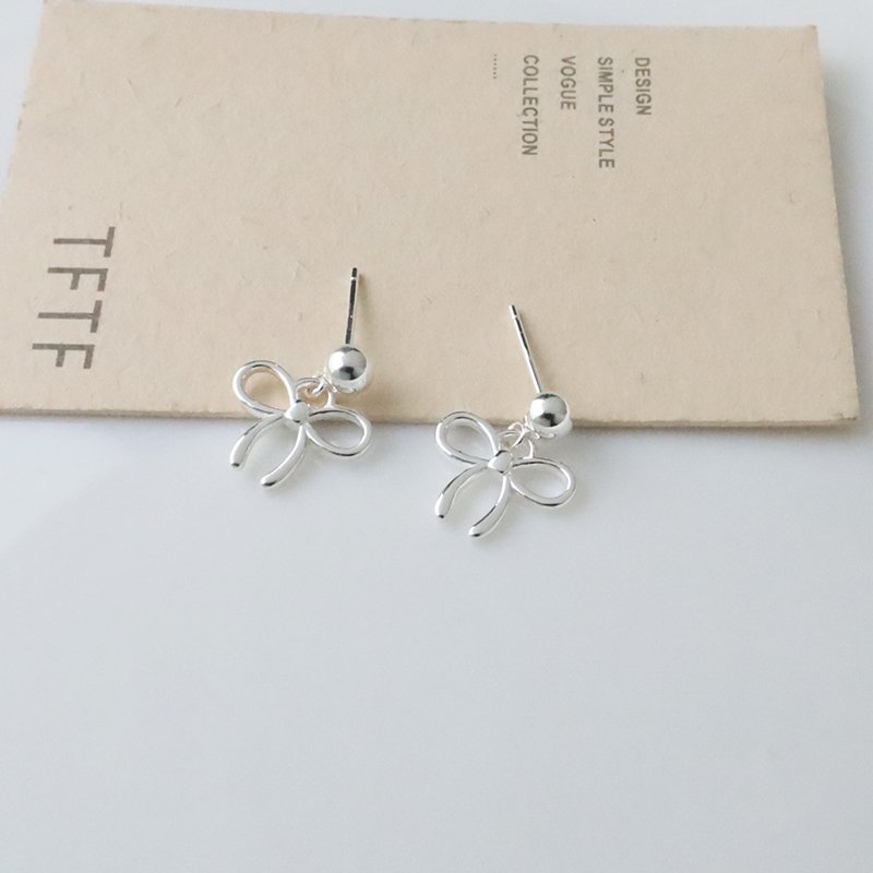 ES560-E 垂吊圓珠蝴蝶結造型耳貼