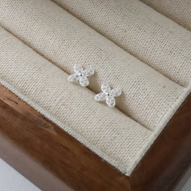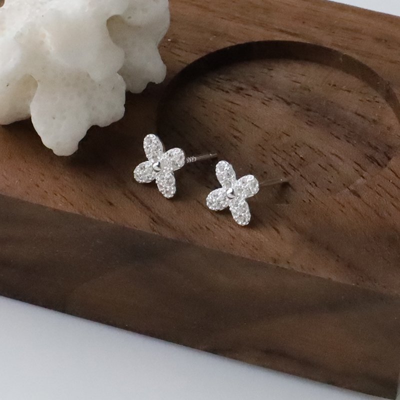 ES372-D 鑲鑽四瓣花造型耳貼