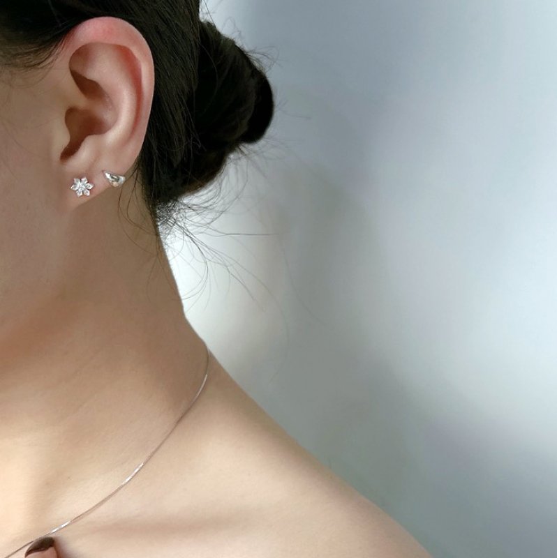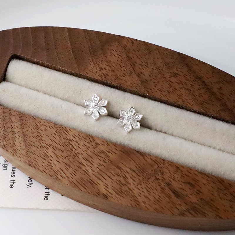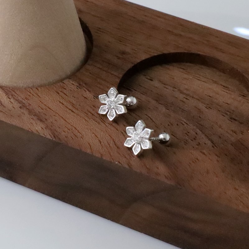 ES124-C 鑲鑽銀蕊六辦花鎖針耳貼