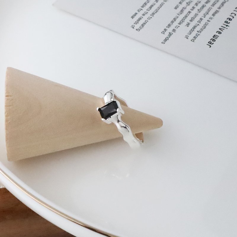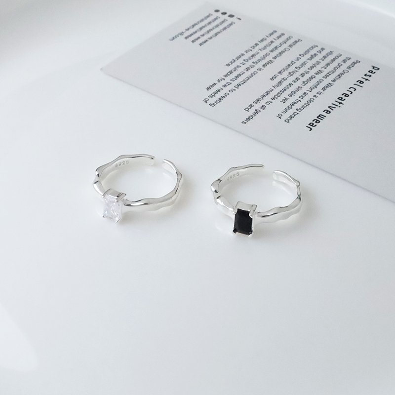 R400-F 波浪長方鋯石造型活圍戒(白/黑)