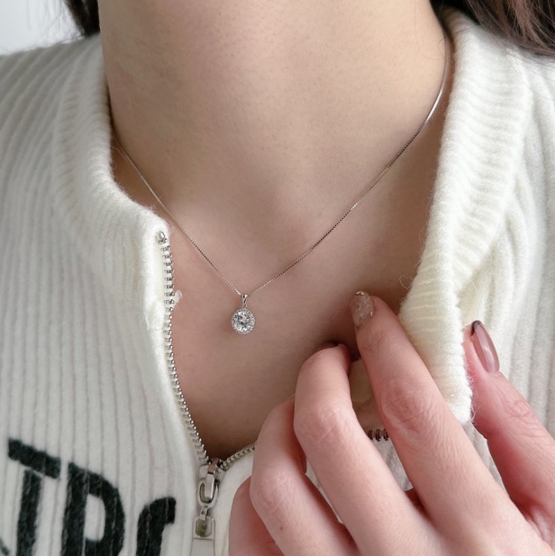 N395-F 四爪滾邊鑲鑽莫桑石套鍊