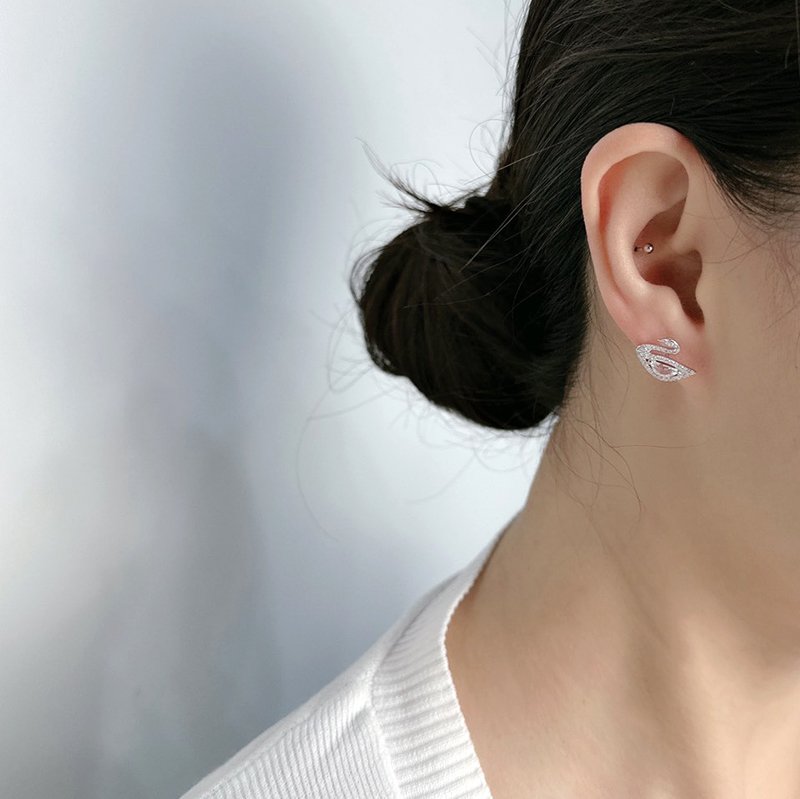ES81-C 鑲鑽天鵝造型耳貼(白銀/玫金)