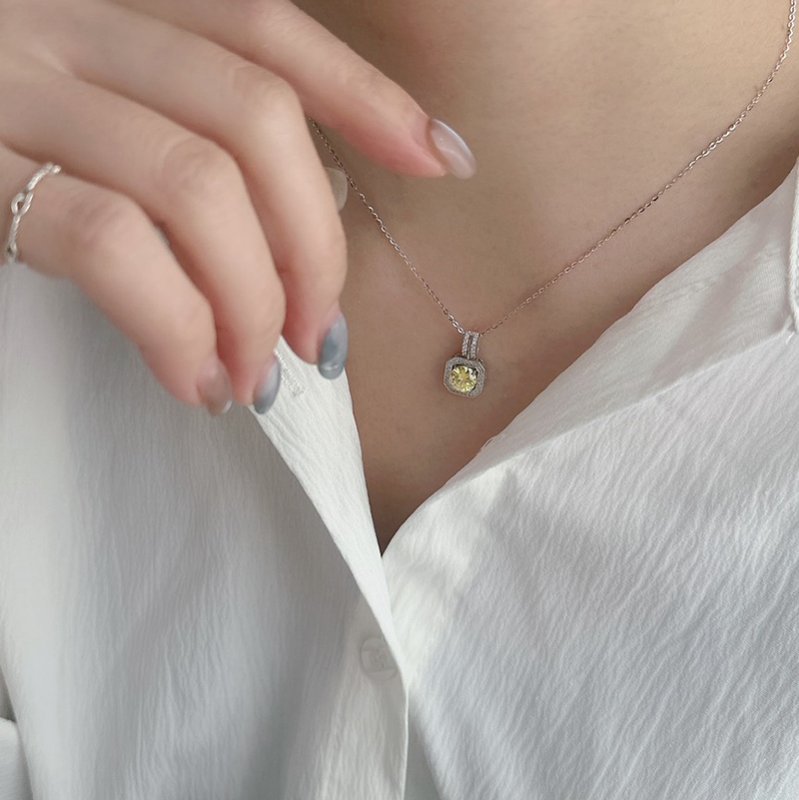 N523-D 兩線鏤空方型黃莫桑石造型套鍊