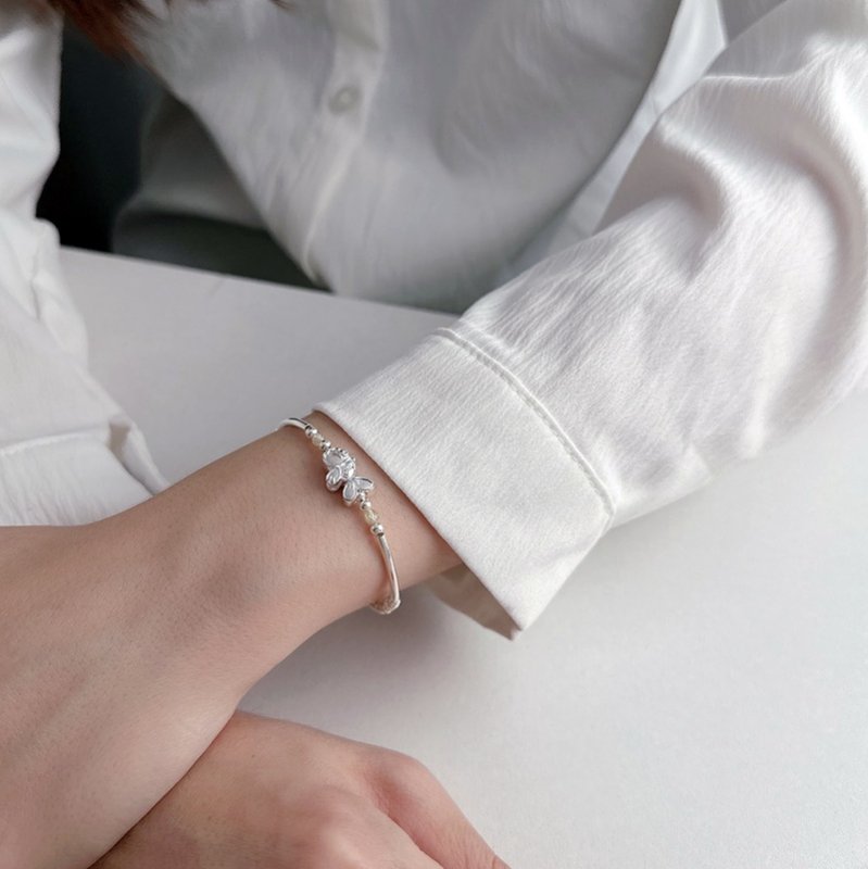 HB-448-C 水晶拼接圓珠金魚造型銀手鍊