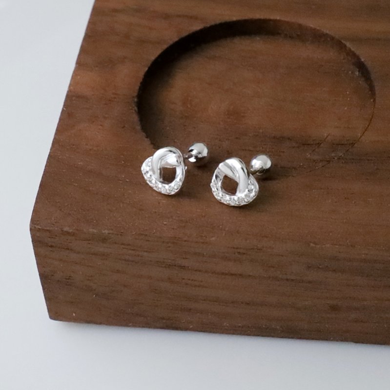 ES461-E 扭結愛心鑲鑽造型耳貼