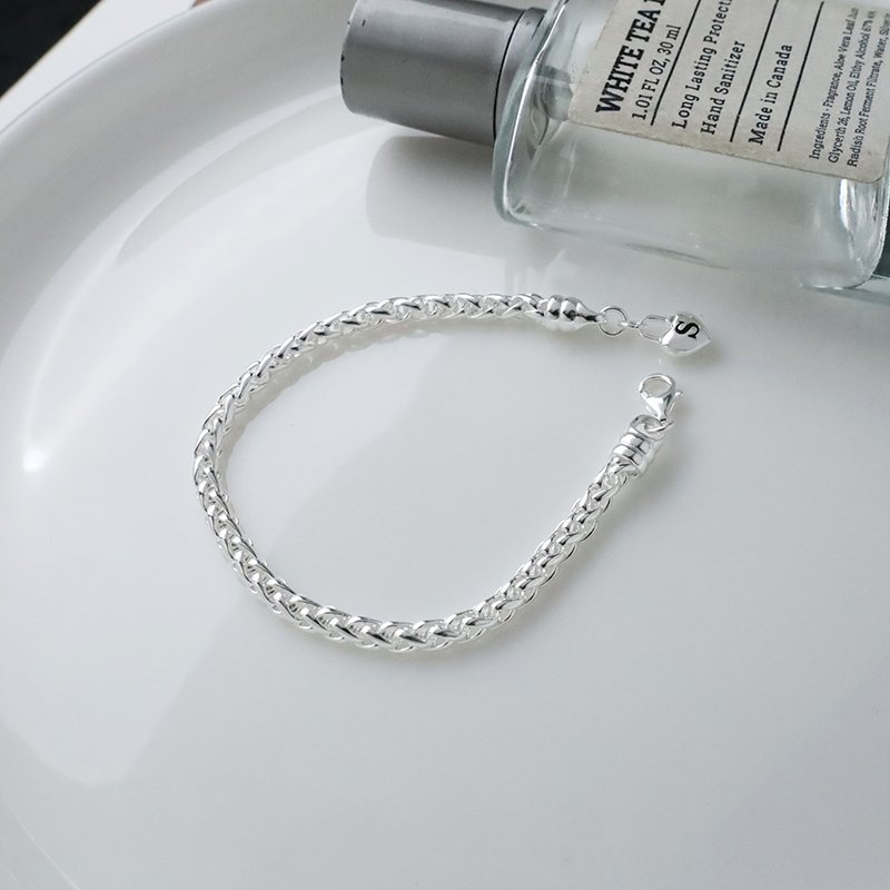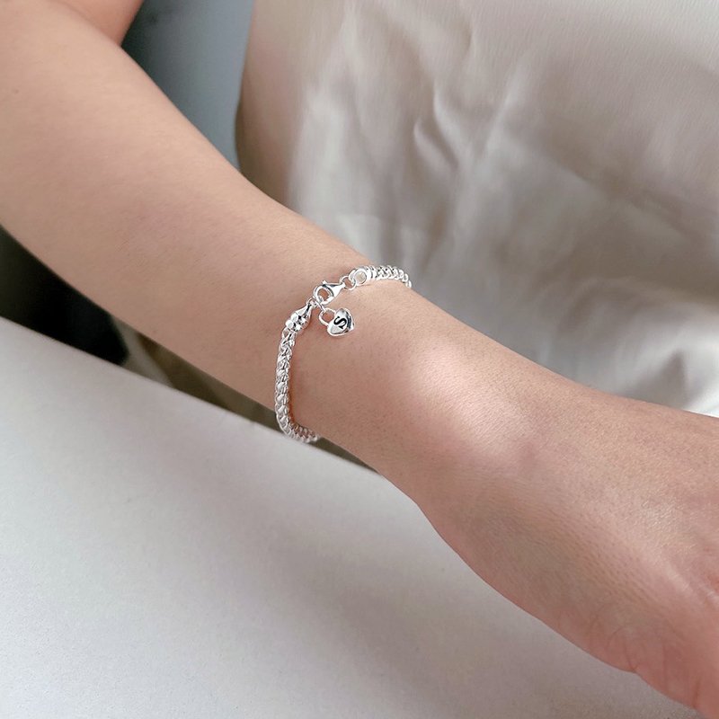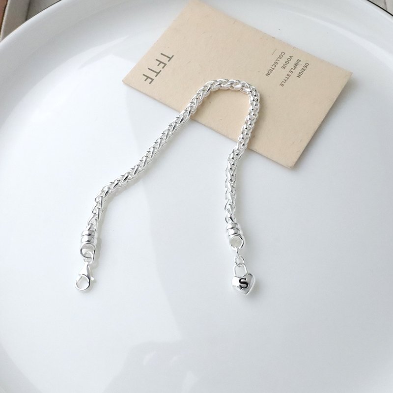 HB-279-E 字母S愛心鎖麻繩銀手鍊
