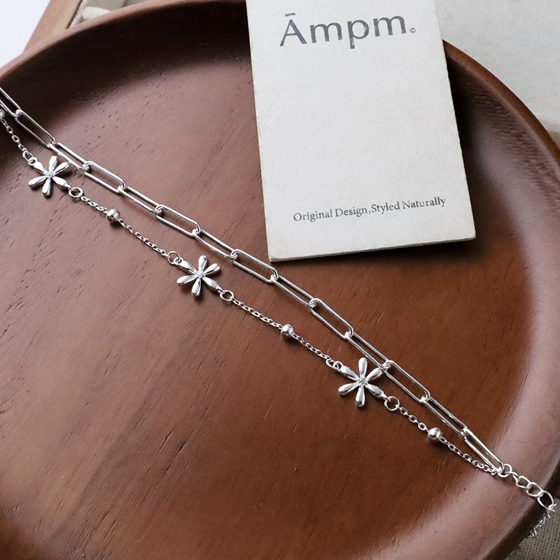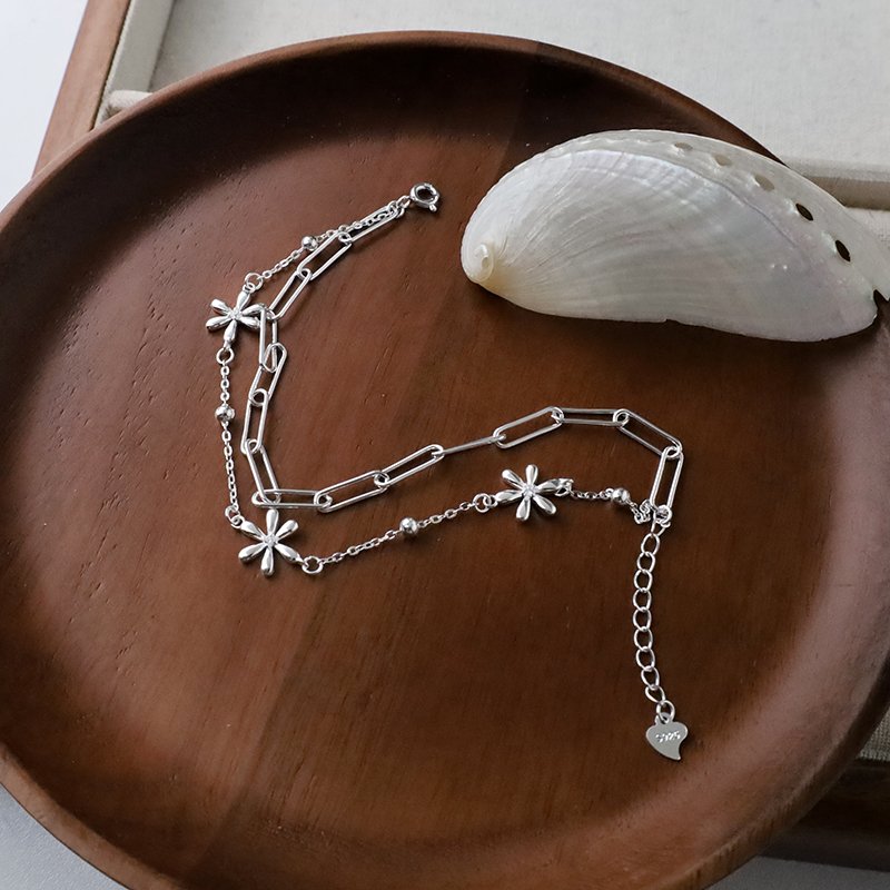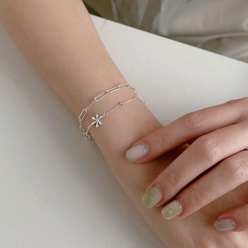 HB-124-B 小花間隔珠橢圓雙鍊銀手鍊