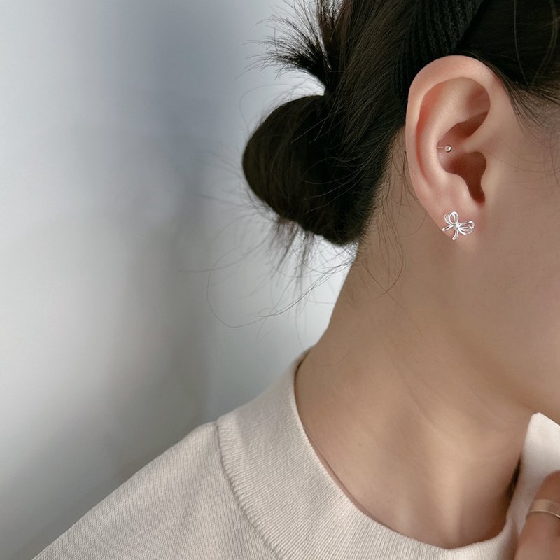 ES560 玫瑰花蕊蝴蝶結珠珠造型耳貼