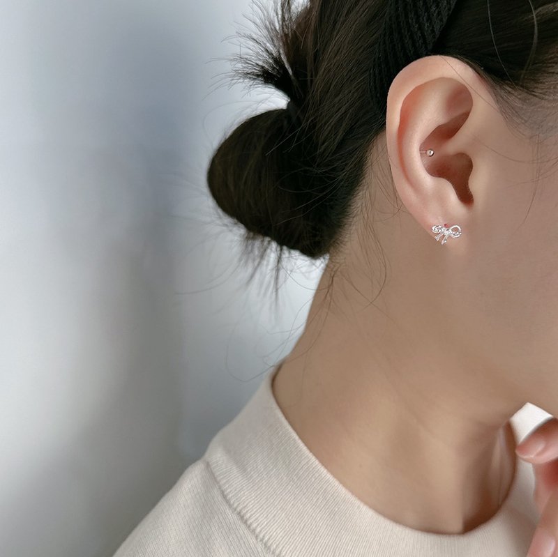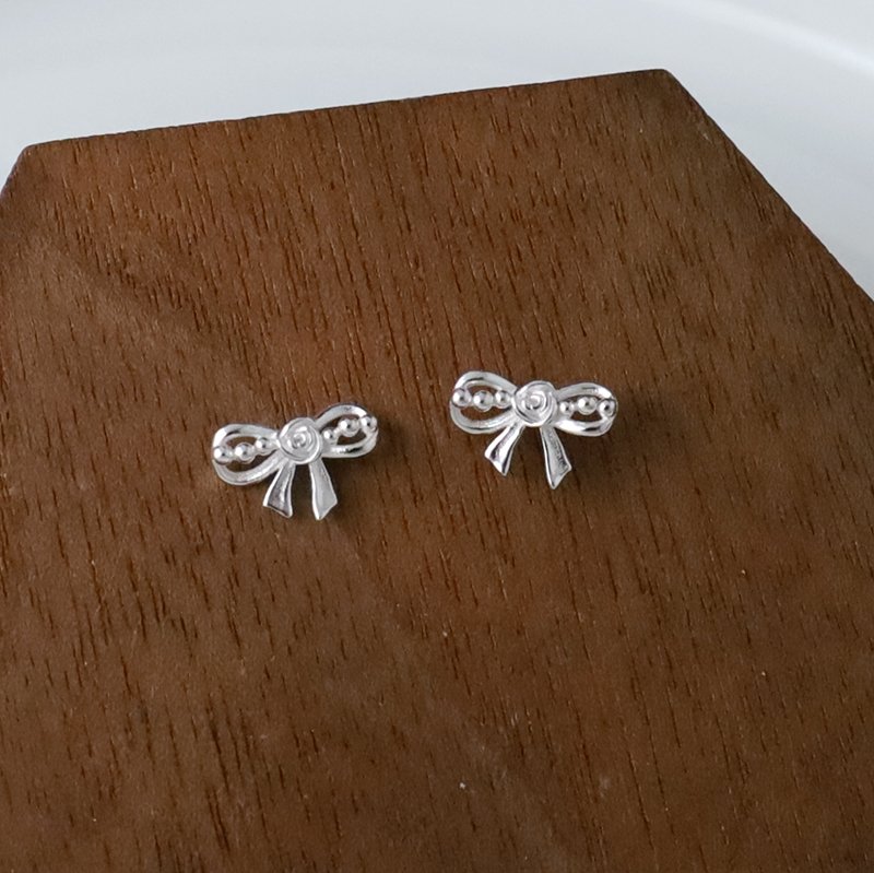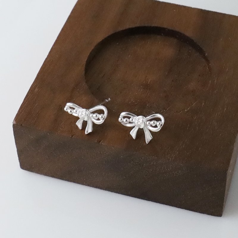 ES560 玫瑰花蕊蝴蝶結珠珠造型耳貼