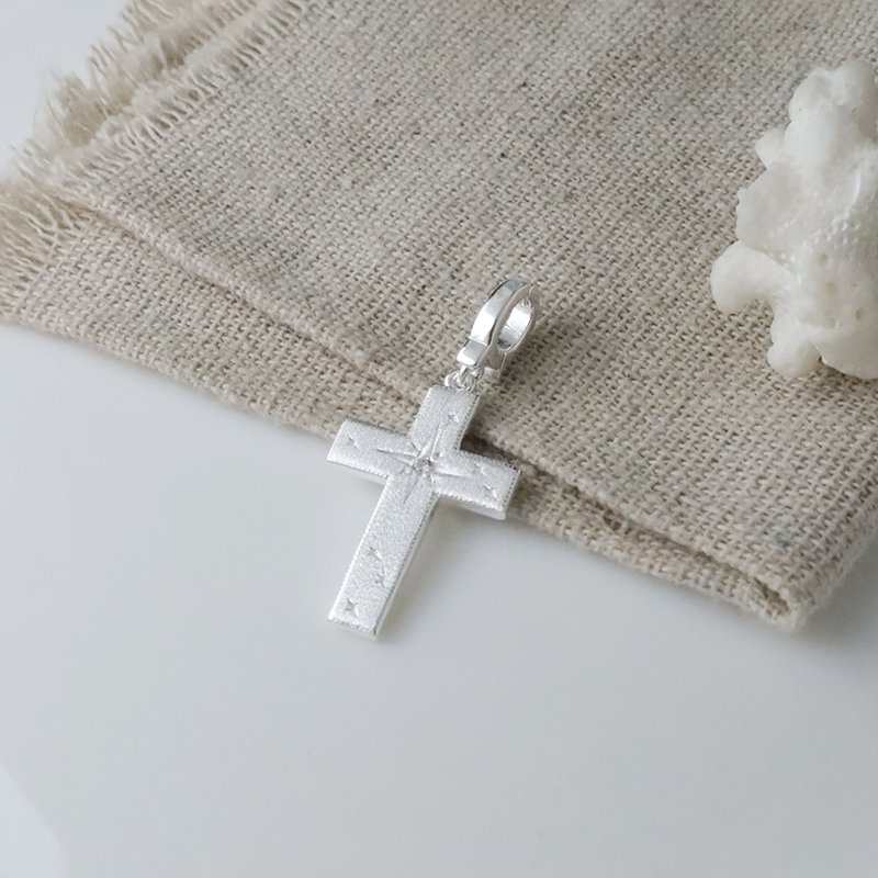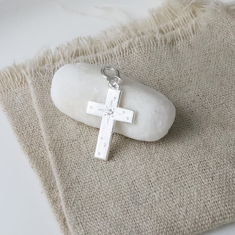 M14-538 拉絲閃耀鑲鑽十字架銀墜