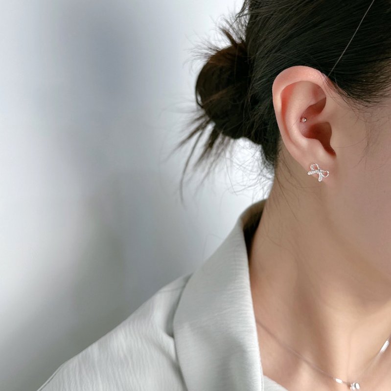 ES525-F 拼接鑲鑽蝴蝶結造型耳貼